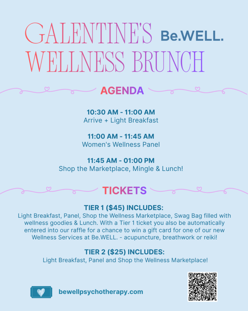 Be.WELL. Psychotherapy & Wellness is hosting a community-centered Galentine’s Day Wellness Brunch to celebrate women, support local women.